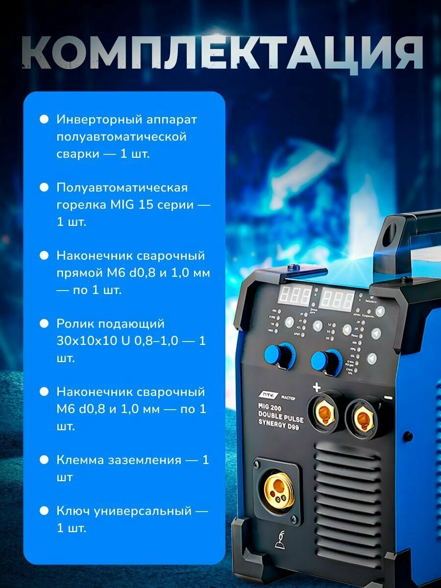 Инвертор сварочный ПТК мастер MIG 200 DOUBLE PULSE SYNERGY D99 ГОСТ 21694-94