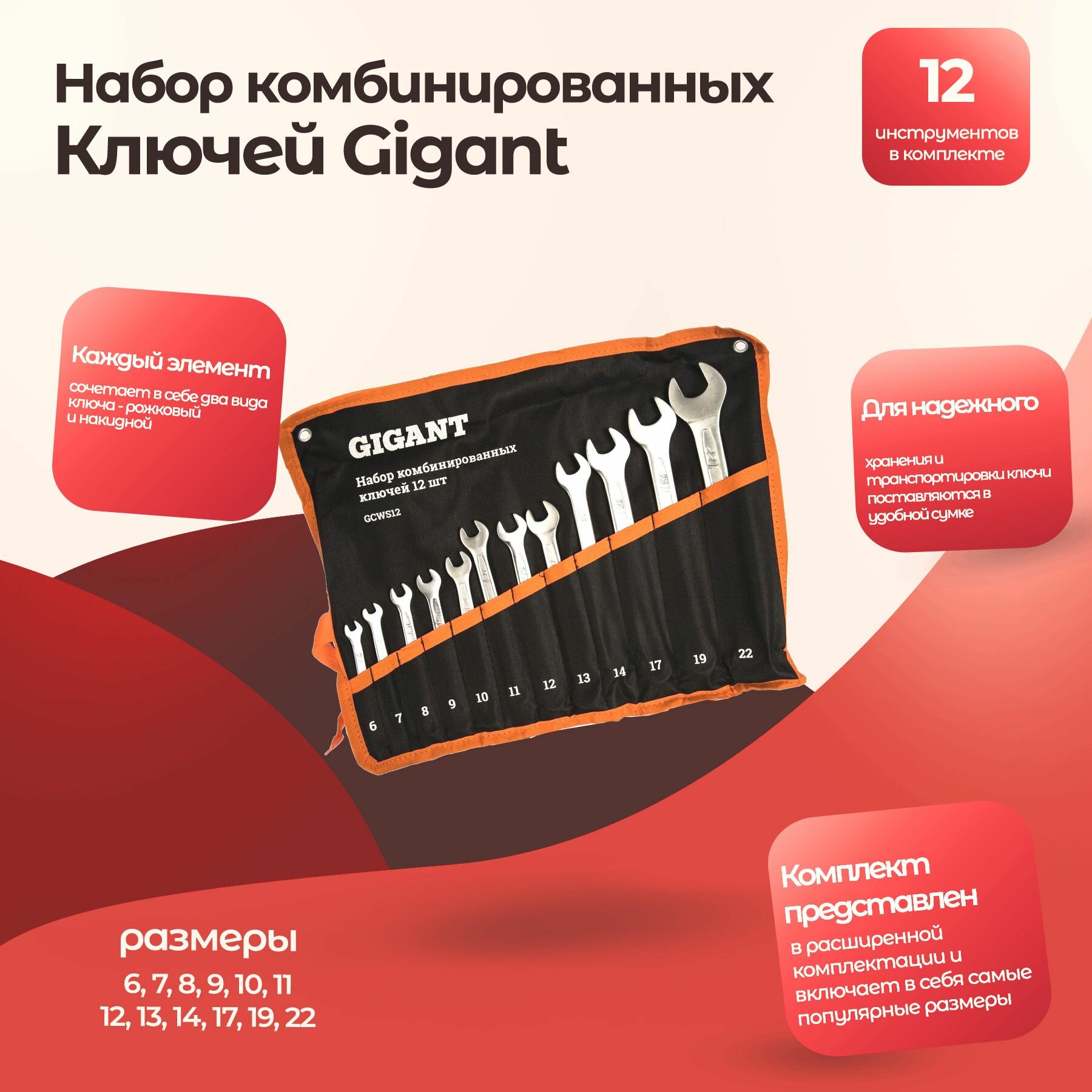 Набор комбинированных ключей 12 шт Gigant GCWS12/1 интересное: