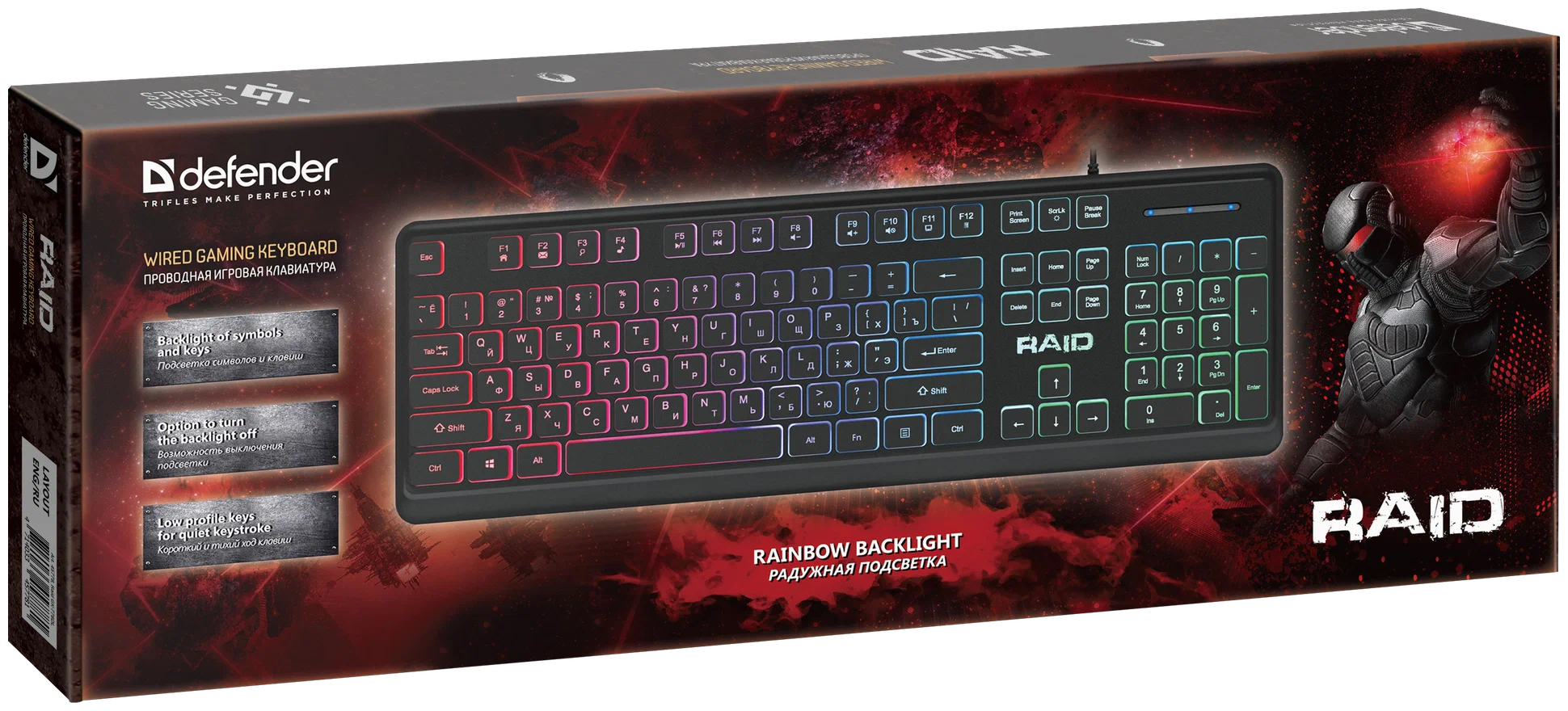Клавиатура Defender игровая Raid GK-778DL RU, Rainbow,плоская, тихий ход, 104 кнопки (45778)