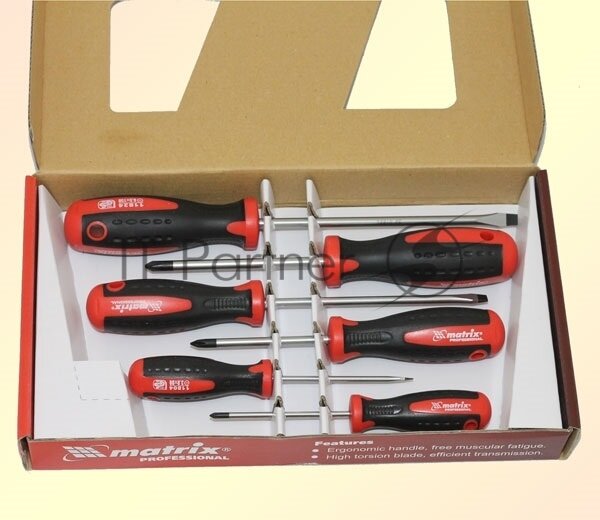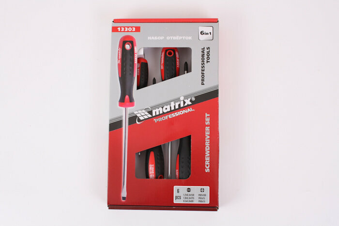 Набор отверток, двухкомпонентные рукоятки, 6 штук, сталь S2 Matrix [13303]