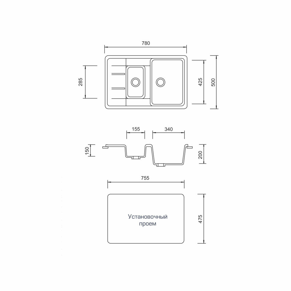 | Ширина мойки | 77 см |
