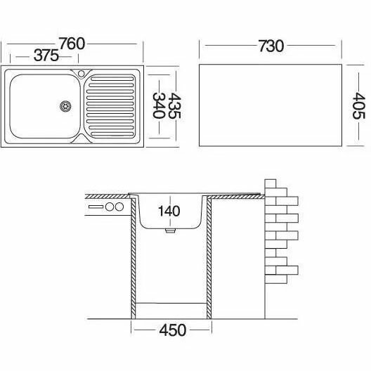Мойка для кухни Ukinox Классика 760x435х155 мм врезная прямоугольная с крылом сталь