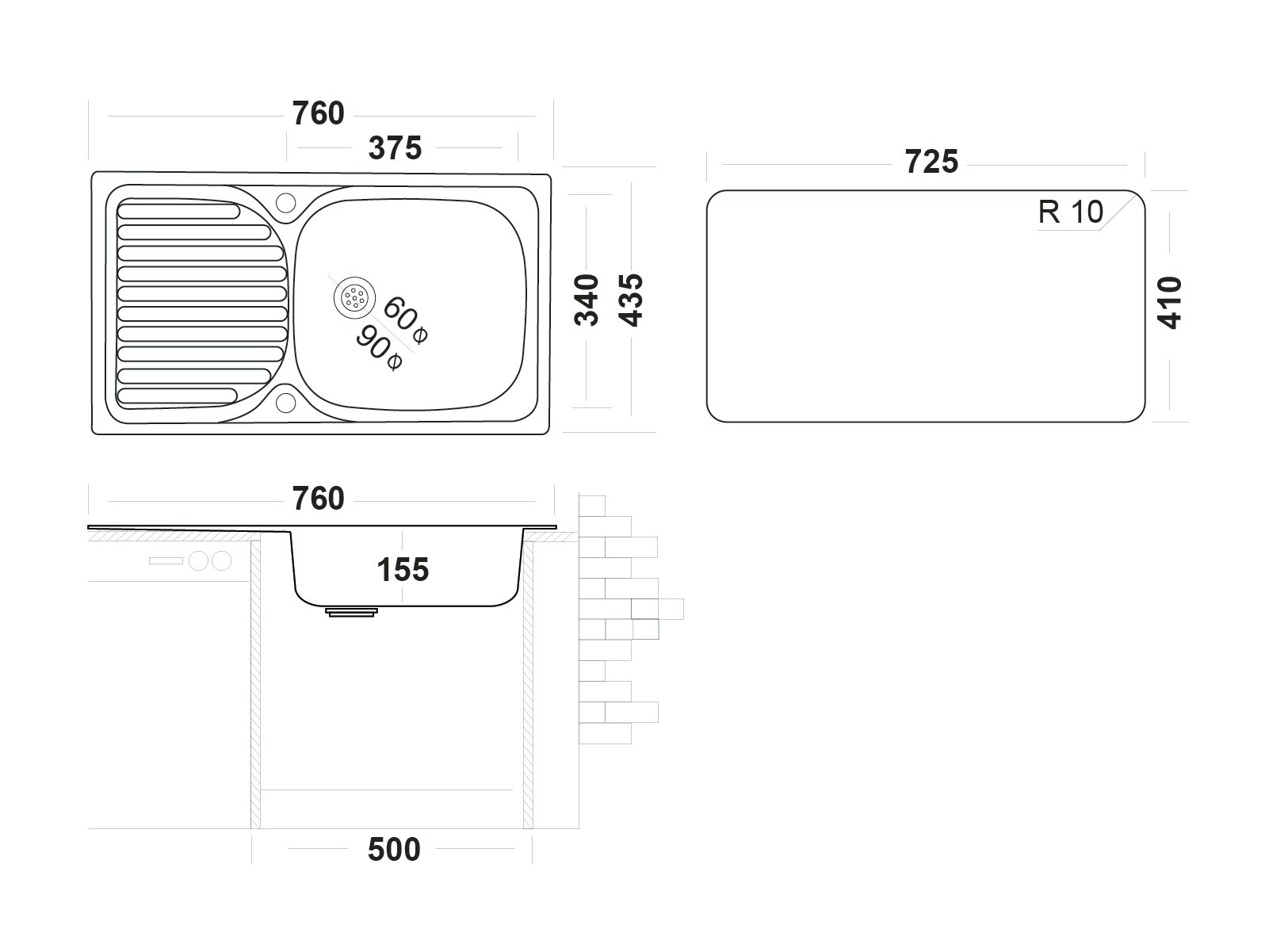 Врезная кухонная мойка "Юкинокс" Классика CLM760.435 -GT5K -O, матовый, (0.5) интересное:
