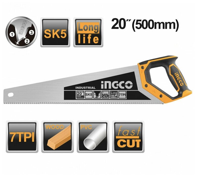 Ножовка по дереву INGCO 500 мм INDUSTRIAL