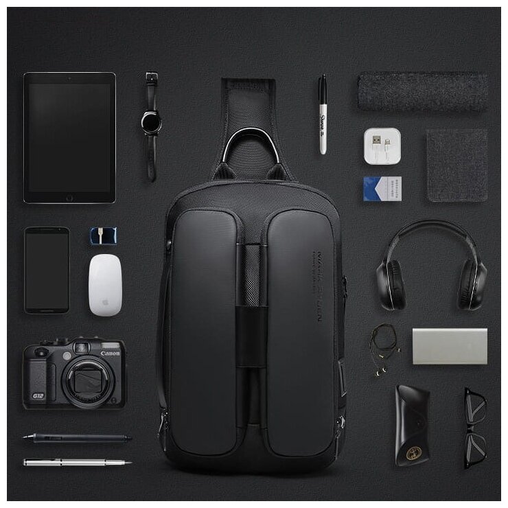 Рюкзак мужской городской маленький 9.2л для ноутбука 10 однолямочный Mark Ryden MR7219 Черный водонепроницаемый с USB зарядкой подростковый интересное: