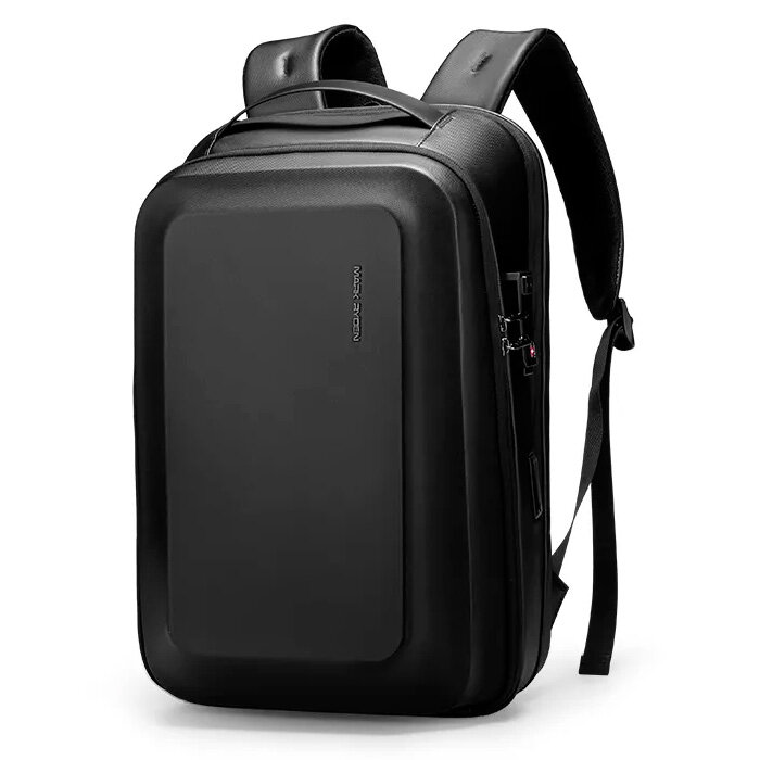 Рюкзак-антивор мужской городской дорожный маленький 17л для ноутбука 15.6, планшета с кодовым замком Mark Ryden MR2958KR Черный с USB зарядкой кожаный интересное: