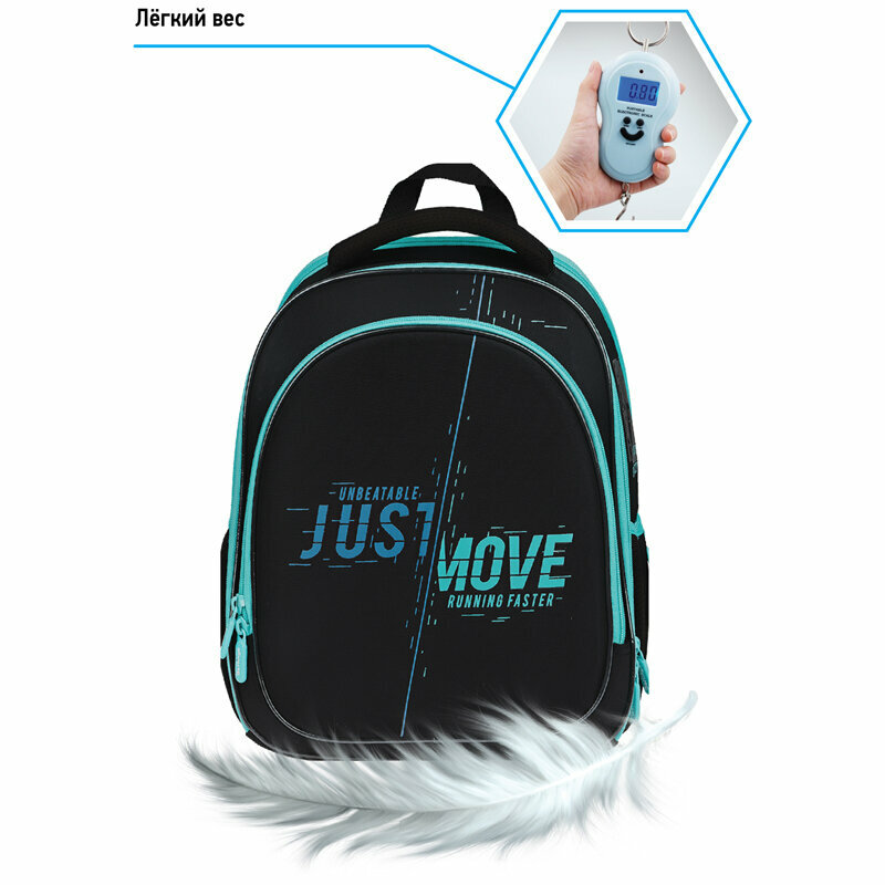 Berlingo ранец Expert Light Just move RU07236, черный/бирюзовый