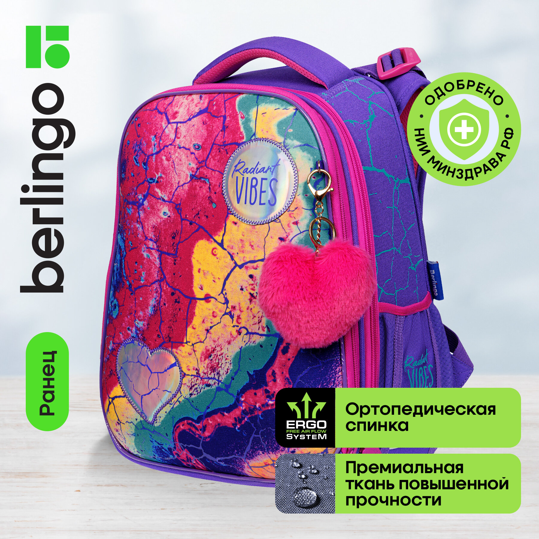 Ранец для первоклассника ортопедический Berlingo для девочки, Expert, "Radiant Vibes", 37х28х16 см, 2 отдела, (RU06109)