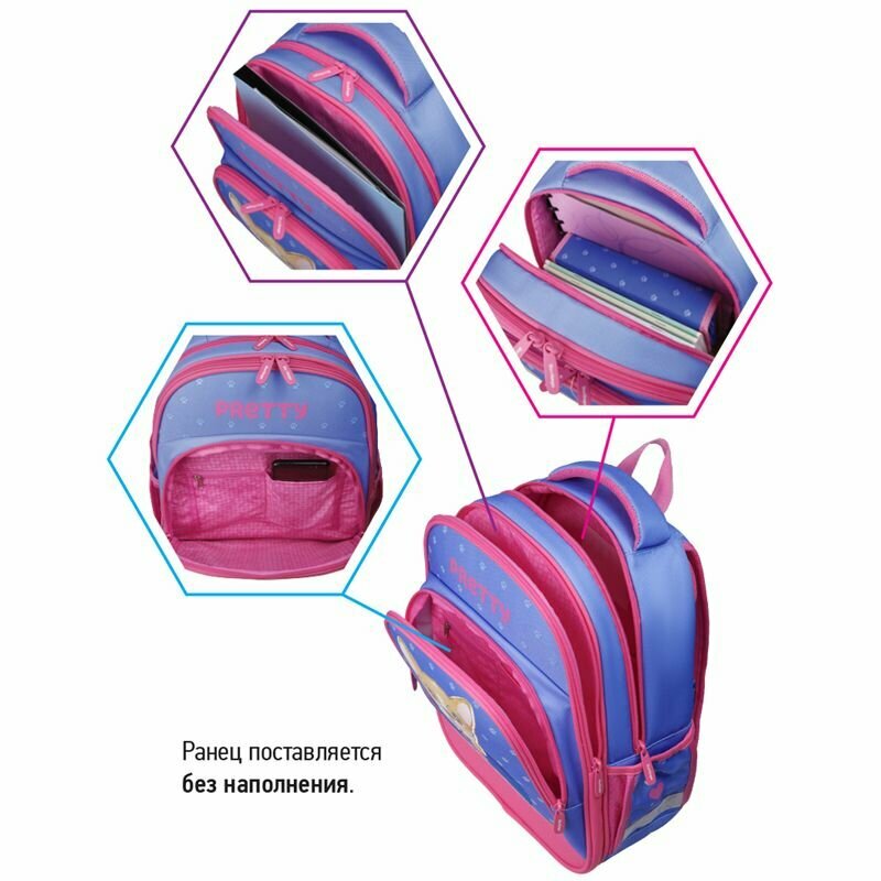 Ранец Berlingo Flash "Pretty Corgi" RU06404, 37*28*16 см, 2 отделения, 3 кармана, сиреневый, розовый