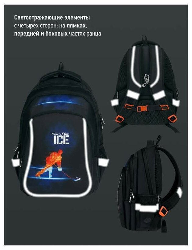Рюкзак школьный Berlingo Comfort "Hockey", 38x27x18см, 3 отделения, 3 кармана, эргономичная спинка (RU08047)