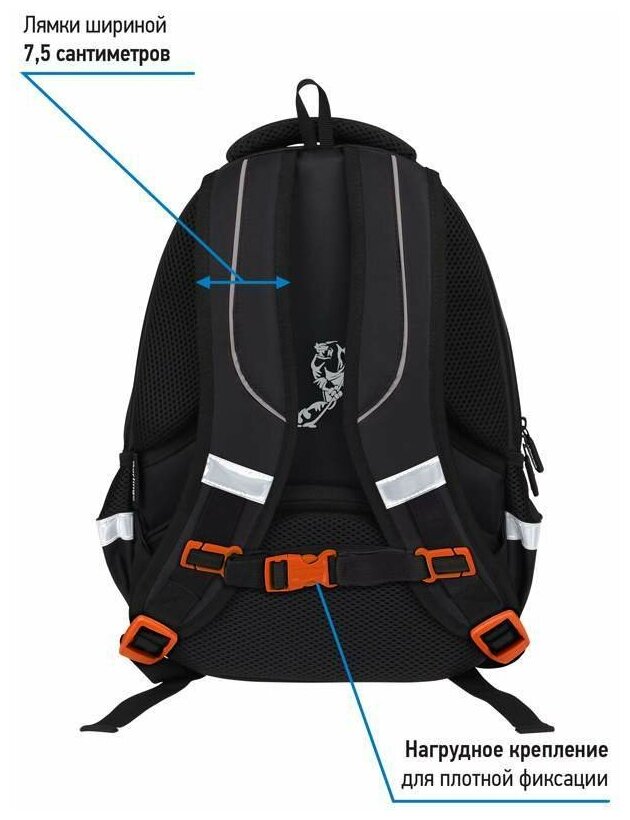 | Особенности | грудная стяжка / жесткое дно / регулируемые лямки / светоотражающие элементы / эргономичная спинка |