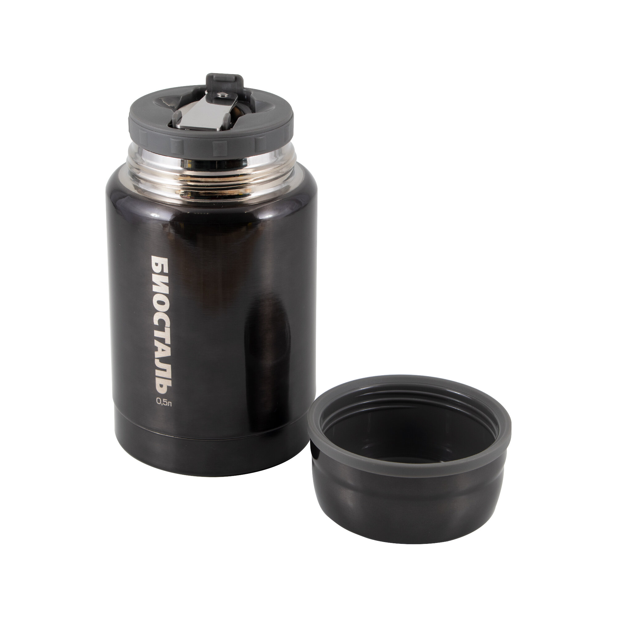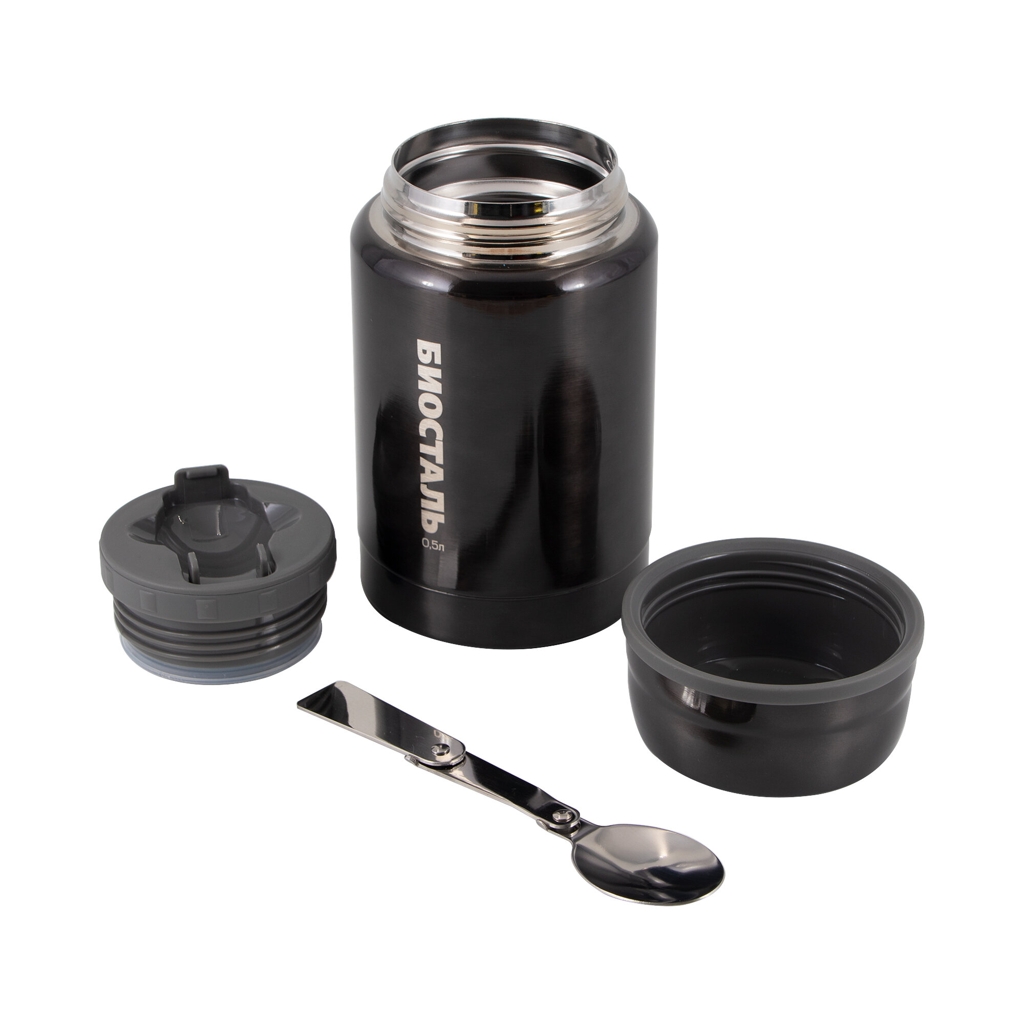 Купить Термос для еды Biostal (0,5 литра), с ложкой, серый