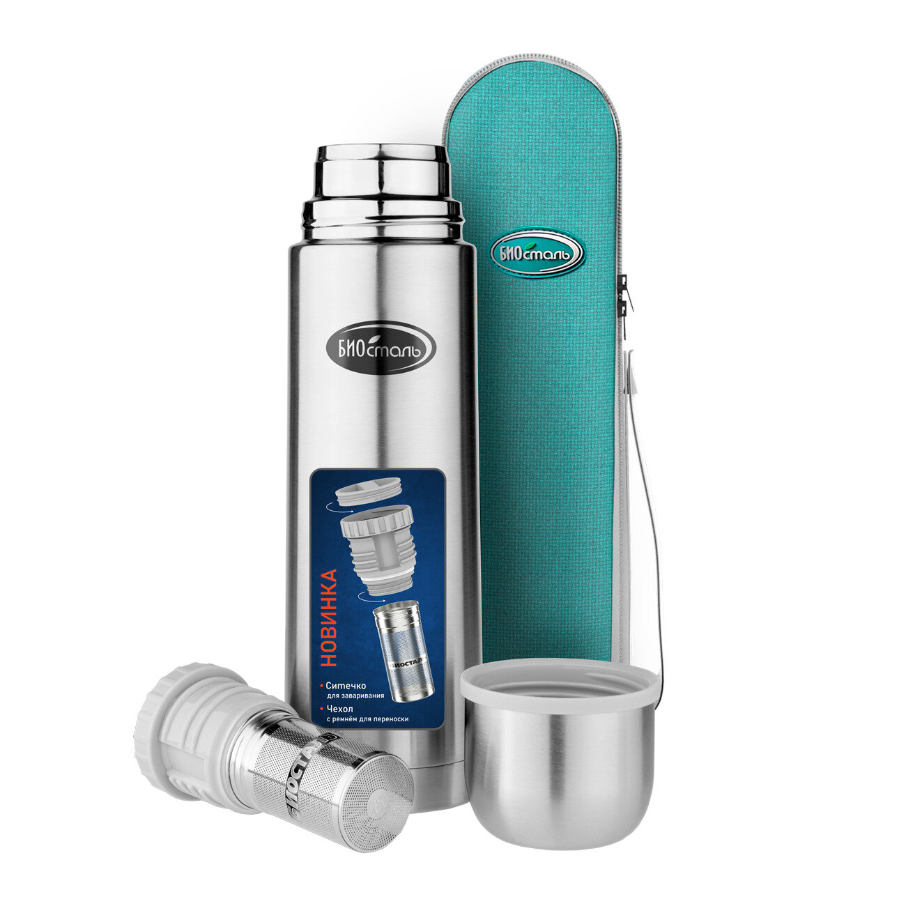 Термос BIOSTAL с узкой горловиной, В чехле, пробка С ситечком, 0,5 л интересное: