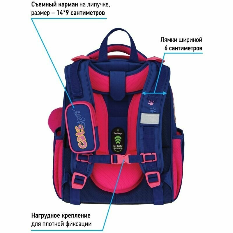 Ранец для девочки Berlingo ортопедический, Expert Surprised cat 37х28х16 см, анатомическая спинка (RU07102)