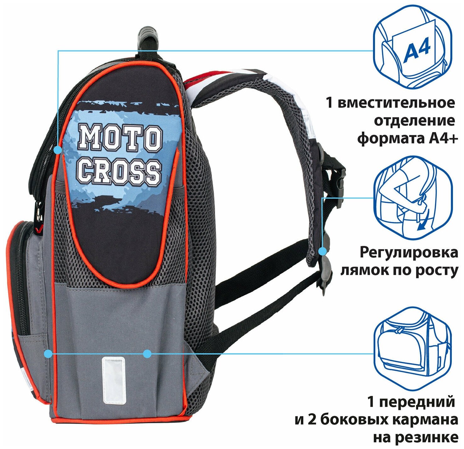 Купить Ранец BRAUBERG STYLE c эргономичной спинкой, "Motocross", 35х28х18 см, 229925 И 4606224313566