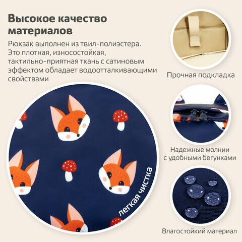 Рюкзак BRAUBERG DREAM универсальный с карманом для ноутбука, комплект 3 шт., эргономичный, "Foxes", 42х26х14 см, 270770 интересное: