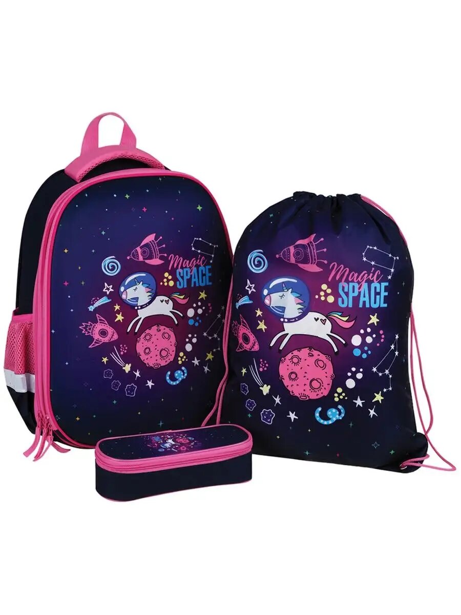 Ранец для девочки ArtSpace ортопедический, School Friend "Unicorn", 39х30х18 см, пенал, мешок для обуви (Uni_17747)