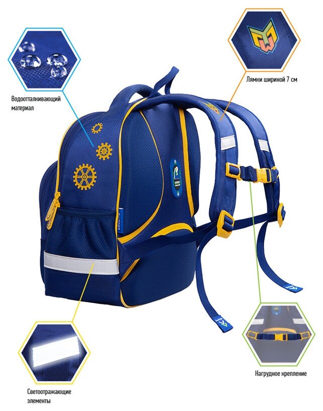 | Особенности | эргономичная спинка / ручка для переноски / светоотражающие элементы / водоотталкивающая пропитка / без наполнения / грудная стяжка / регулируемые лямки |