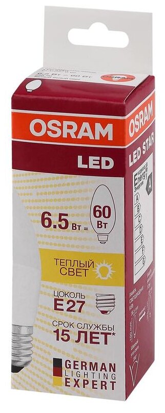 Ниже Вы можете прочитать отзывы на Лампа светодиодная LED STAR CLASSIC B 60 6.5W/830 6.5Вт свеча 3000К тепл. бел. E27 550лм 220-240В мат. пласт. (уп.5шт) OSRAM 4058075568587, ознакомится с подробными характеристиками, посмотреть интересные обзоры и фотографии на Лампа светодиодная LED STAR CLASSIC B 60 6.5W/830 6.5Вт свеча 3000К тепл. бел. E27 550лм 220-240В мат. пласт. (уп.5шт) OSRAM 4058075568587.