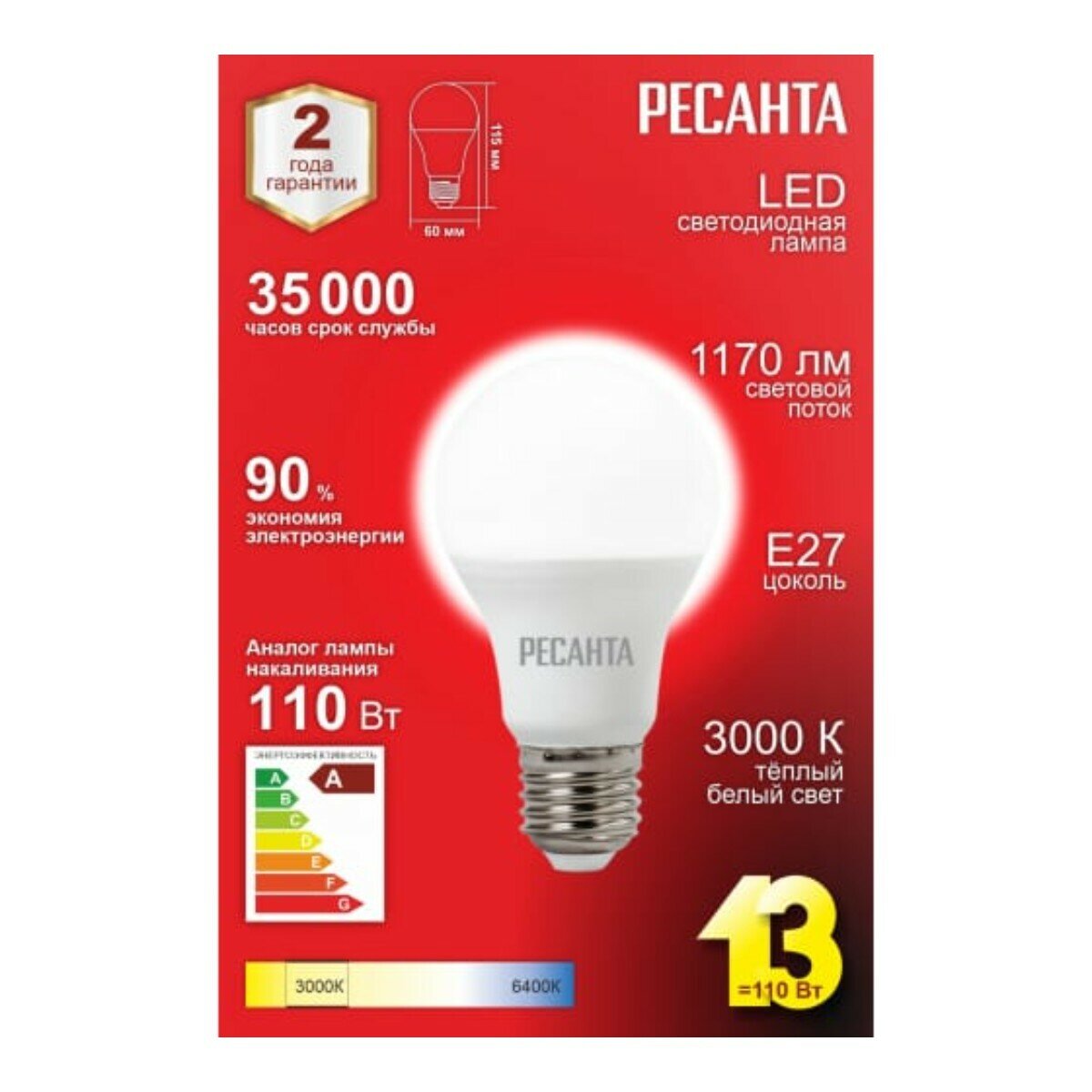 Купить Ресанта Лампа светодиодная LL-R-A60-11W-230-4K-E27 /груша, 11Вт, нейтр., Е27/ 76/1/16
