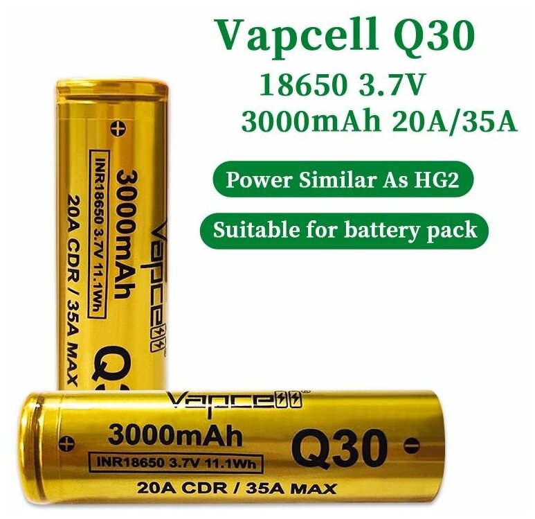 Аккумулятор Vapcell Q30 18650 3000mah 20A/35A плоский плюс интересное: