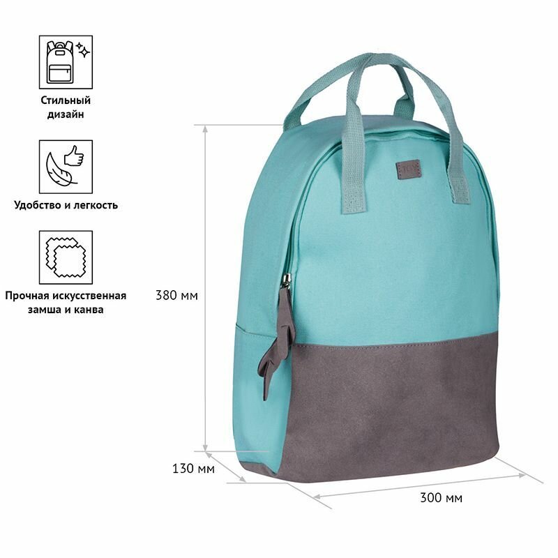 Рюкзак ArtSpace Casual «Soft mint»38×30×13см, 1 отделение, 2 кармана, иск. замша/канва