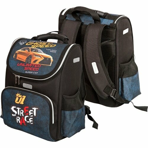 Ранец Стандарт Attomex Lite 34 х 27 х 20 мм, Street Race, чёрный/синий