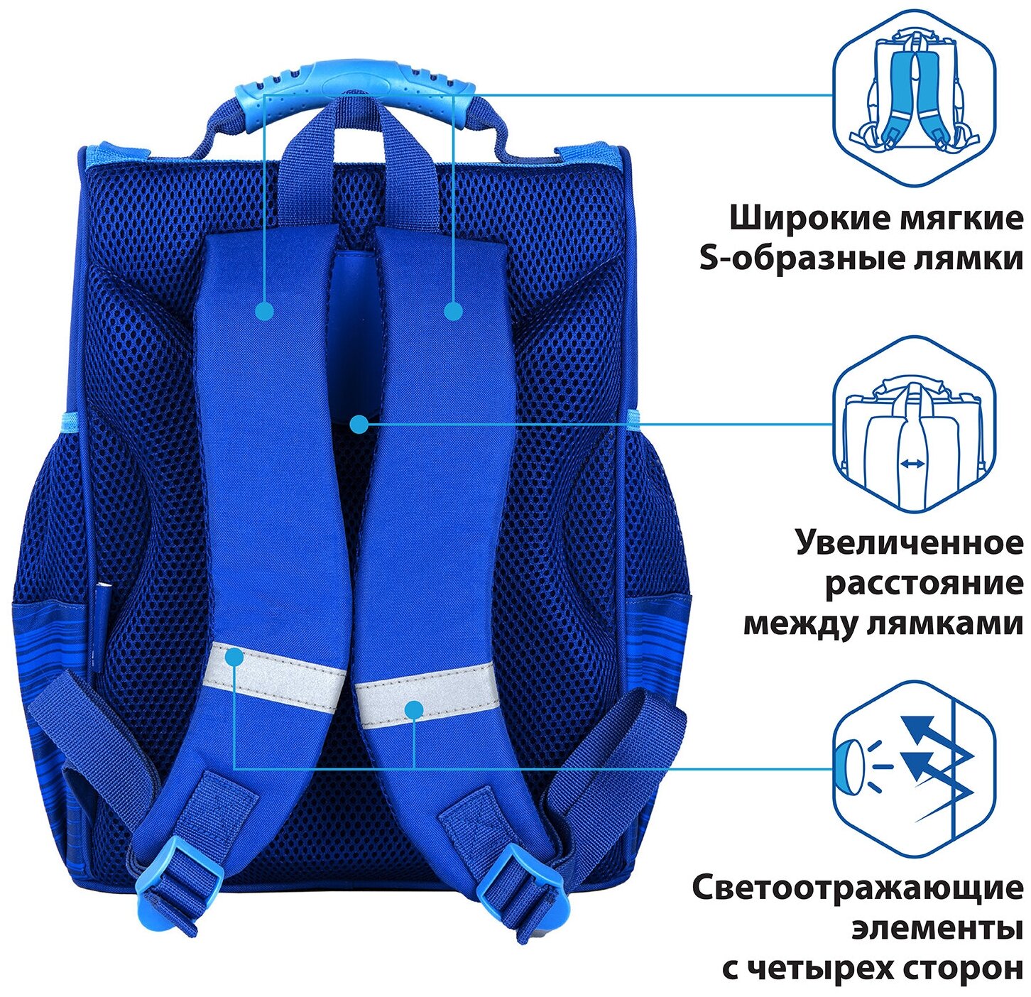 | Особенности | эргономичная спинка / ручка для переноски / светоотражающие элементы / водоотталкивающая пропитка / вентилируемые лямки / вентилируемая спинка / без наполнения / разделитель в главном отделении / регулируемые лямки |