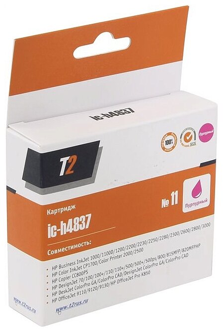 T2 C4837a Картридж 11 (ic-h4837) для HP Business InkJet 1200/2200/2600/2800/CP1700/Pro K850, пурпур .