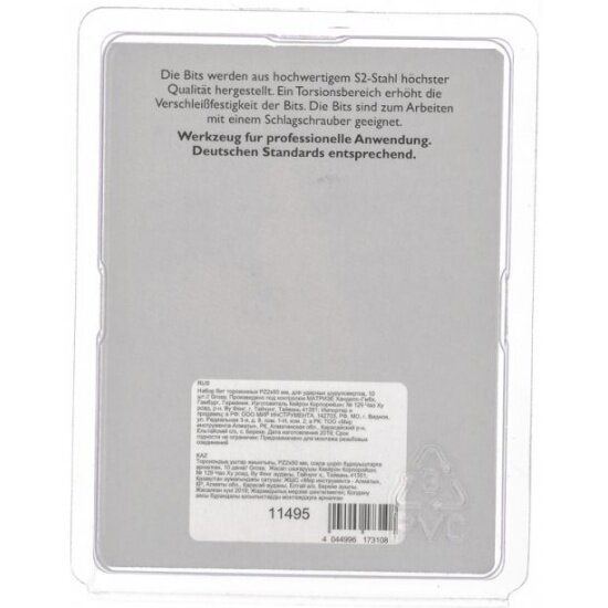 | Дополнительная информация | размер посадки под оснастку -1/4 дюйм, марка стали - сталь S12, количество предметов - 10, тип - торсионные |