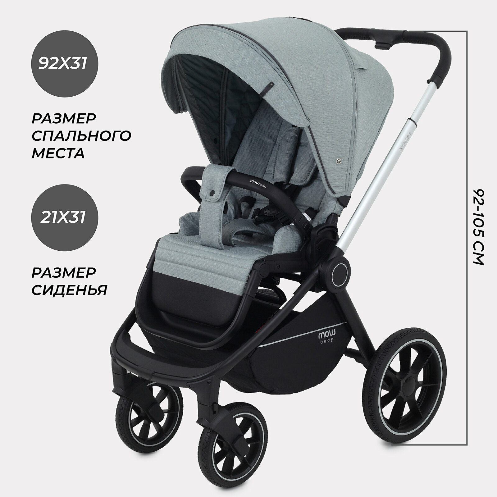 СохранитьКоляска детская MOWBaby "ZOOM"PU (2в1) RA086 Silver Grey интересное: