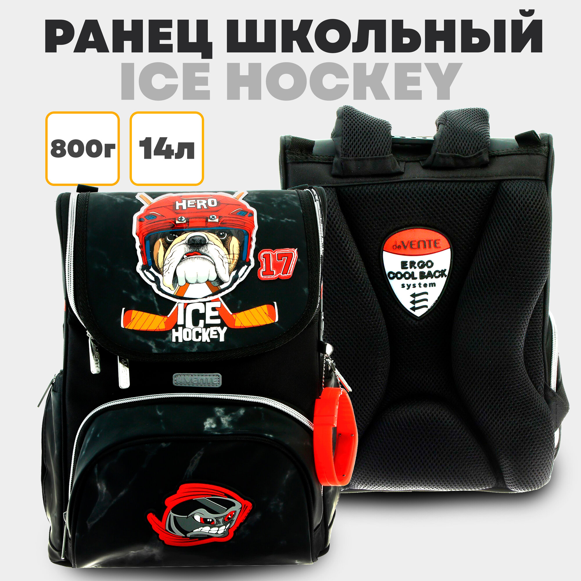 Ранец школьный Стандарт, 35 х 26 х 20 см, deVENTE Mini Ice Hockey, 14L, эргономичная спинка