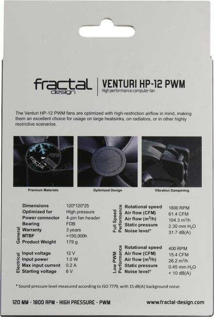 Купить Вентилятор для корпуса Fractal Design Venturi HP-12 PWM Black 120mm Fd-fan-vent-hp12-pwm-bk Fd-fan-v .