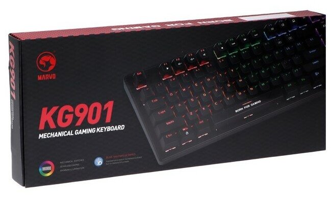 Клавиатура игровая Marvo KG901, 87 клавиш, механическая, с подсветкой, проводная USB 1.5м, черная