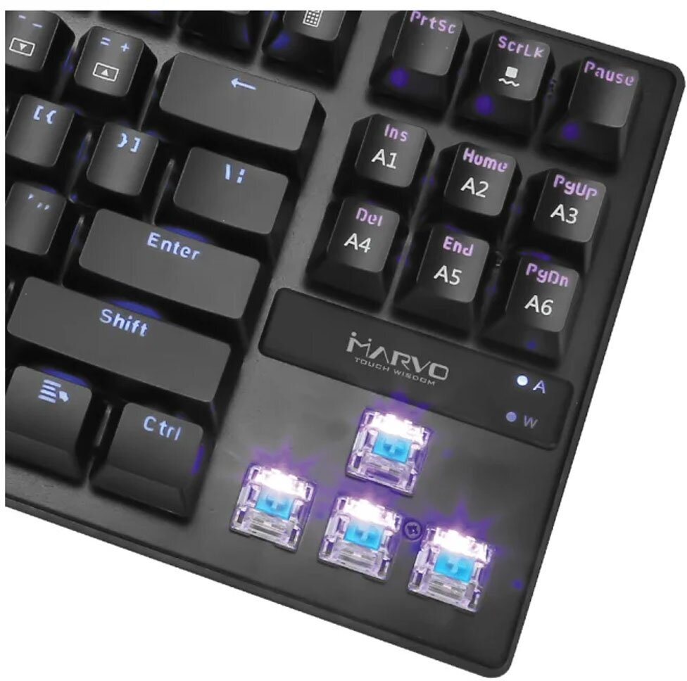 Клавиатура MARVO KG901, игровая, проводная, механическая, 87 клавиш, USB, подсветка, черная
