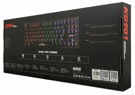 Клавиатура Marvo Kg901, игровая, проводная, механическая, 87 клавиш, Usb, подсветка, черная Marvo 91 .
