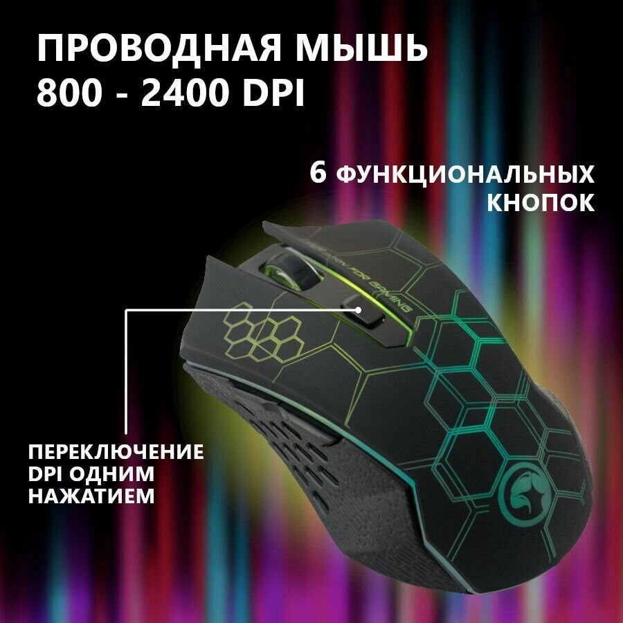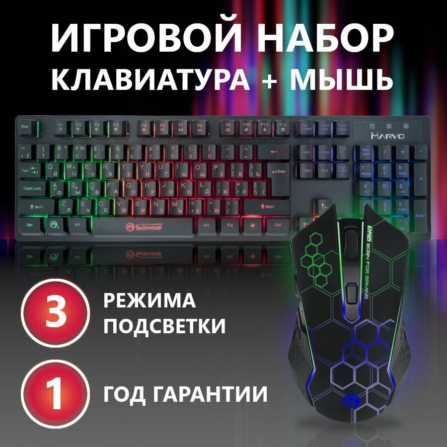 Клавиатура и мышь игровые Marvo KM409 проводной комплект с подсветкой, черные интересное: