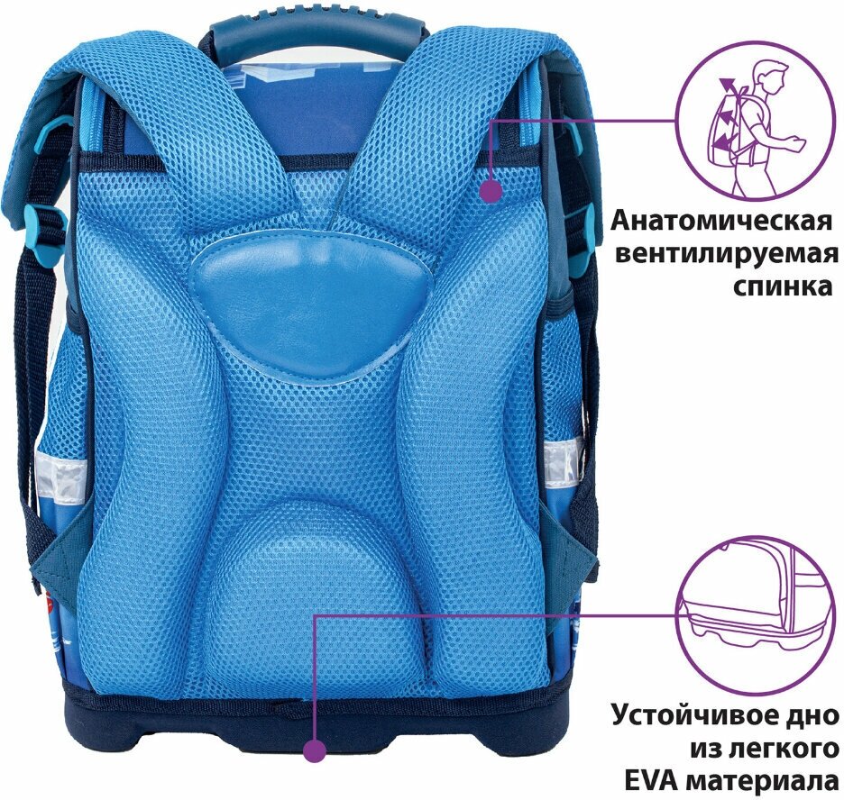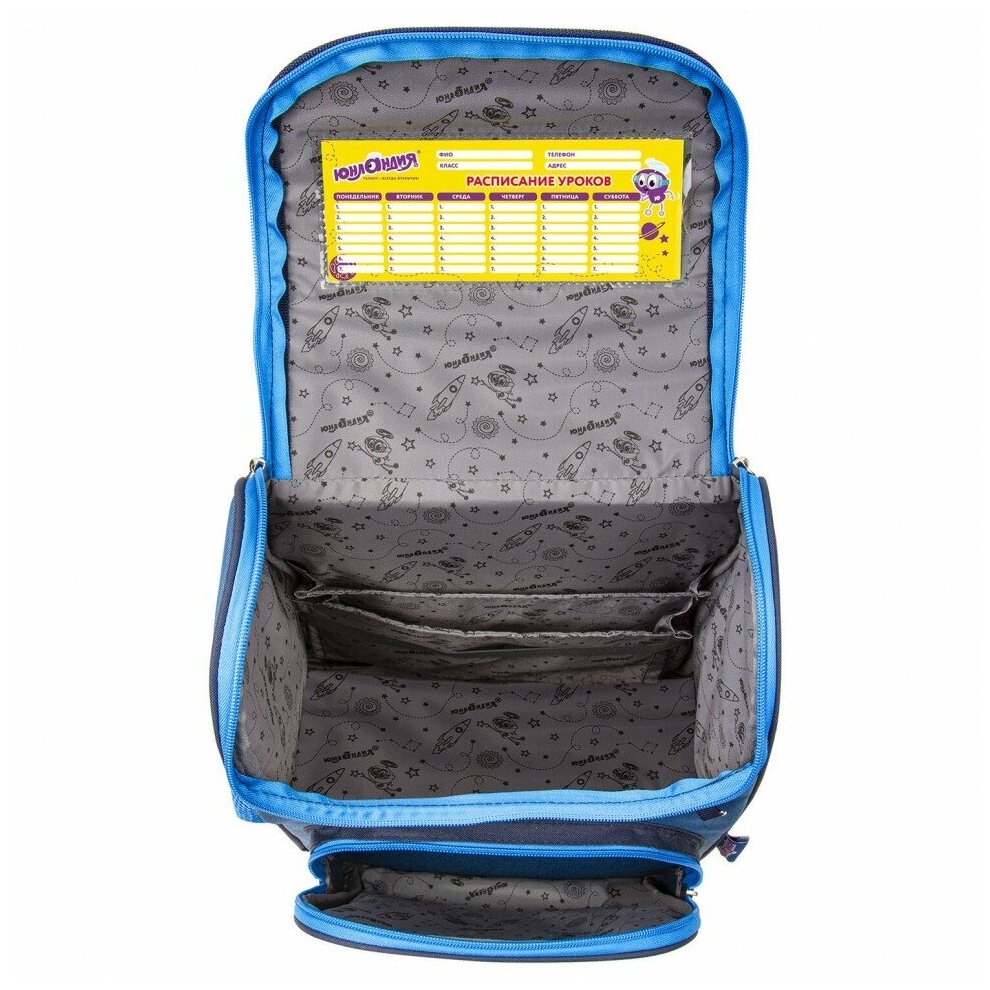 | Дополнительная информация | вкладыш для заполнения расписания уроков и контактной информации школьника на внутренней стенке крышки ранца; количество внешних карманов: 3 |