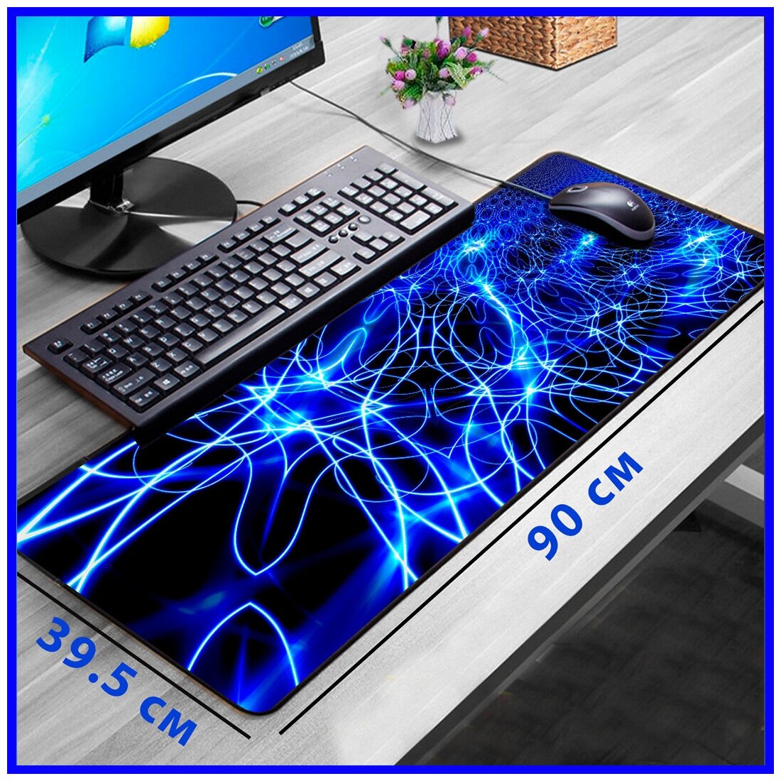 Большой игровой коврик для мыши с 3D принтом. Компьютерный ковер с рисунком для клавиатуры и мышки. Аксессуар геймера