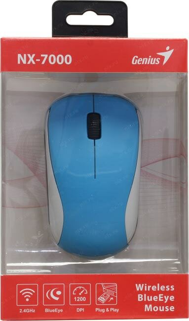 Мышь Genius NX-7000, голубой (31030016402) оптический, 1200 dpi, радиоканал