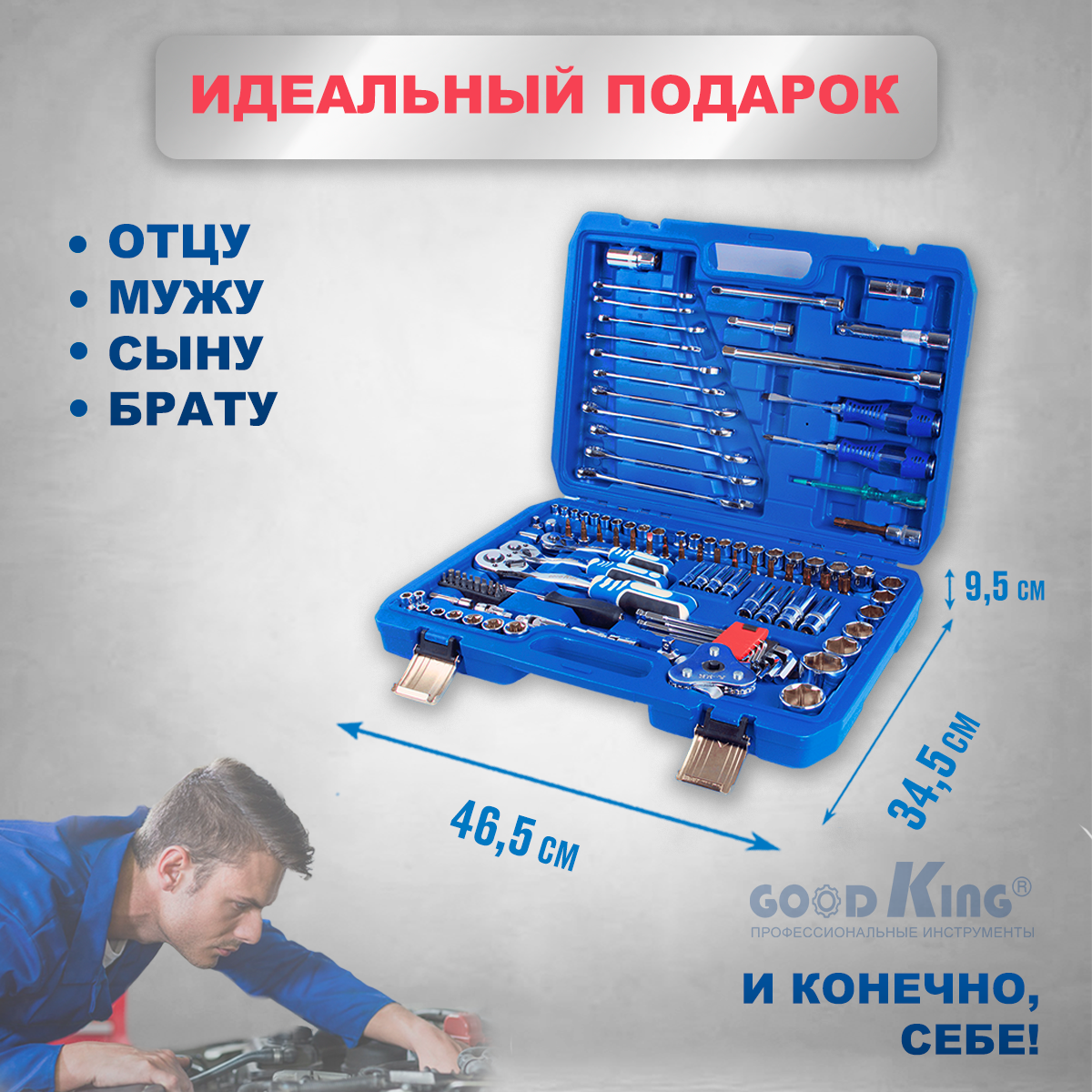 GOODKING Набор инструментов для авто 121 предмет 1/4 3/8 1/2 трещотка 72 зуба B-10121