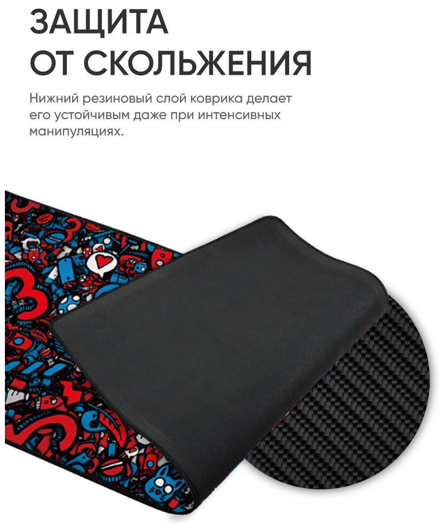 Большой коврик для мышки игровой 300x700x3 мм Граффити красный