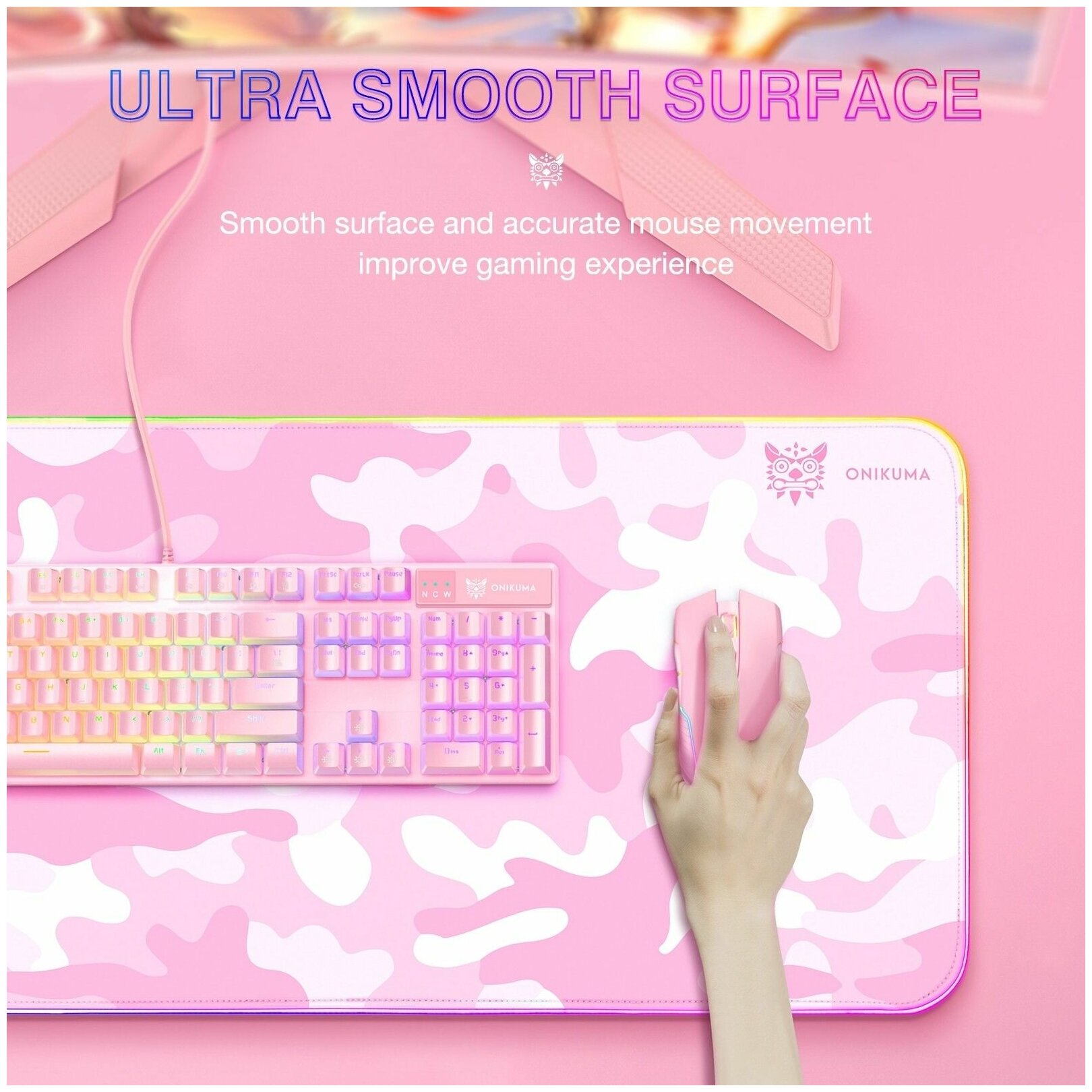 Игровой коврик для мыши, Коврик для мыши с RGB подсветкой, ONIKUMA MP005, розовый интересное: