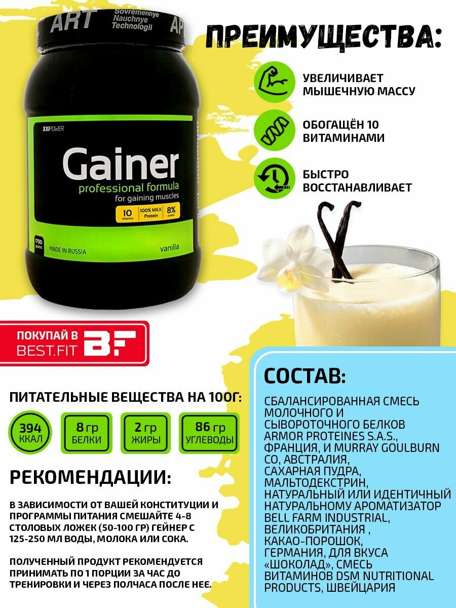 Гейнер XXI Gainer 1,7кг (Ваниль) Спортивное питание для набора мышечной массы с витаминами интересное:
