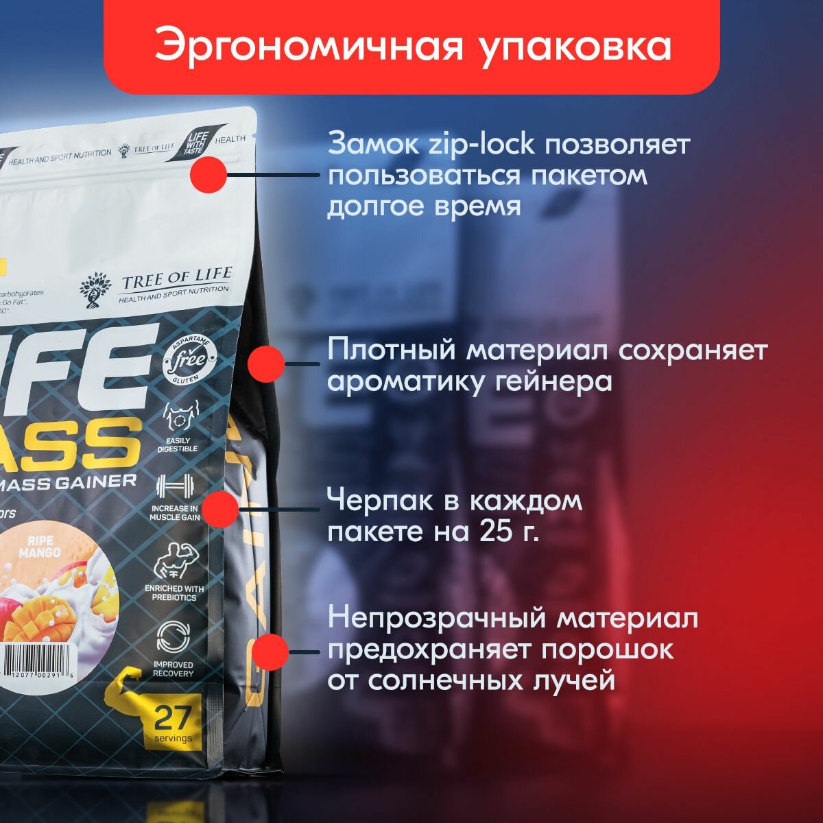 Life Mass Premium Mass Gainer 2730 gr bag, манго
