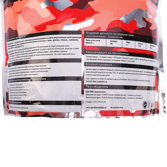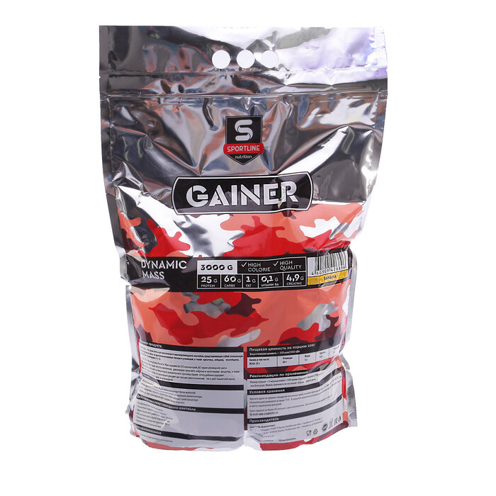 Гейнер SportLine Dynamic Mass, банан, 3 кг./В упаковке шт: 1 интересное: