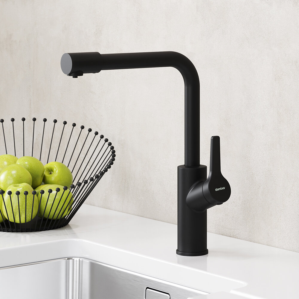 Купить Смеситель кухонный Damixa Merkur высота 35.9 см с поворотным изливом и фильтром цвет чёрный