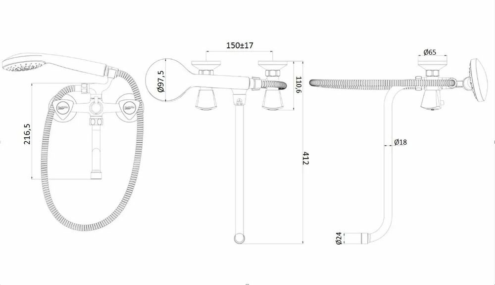 | Комплектация | смеситель, душевая лейка, шланг, инструкция |