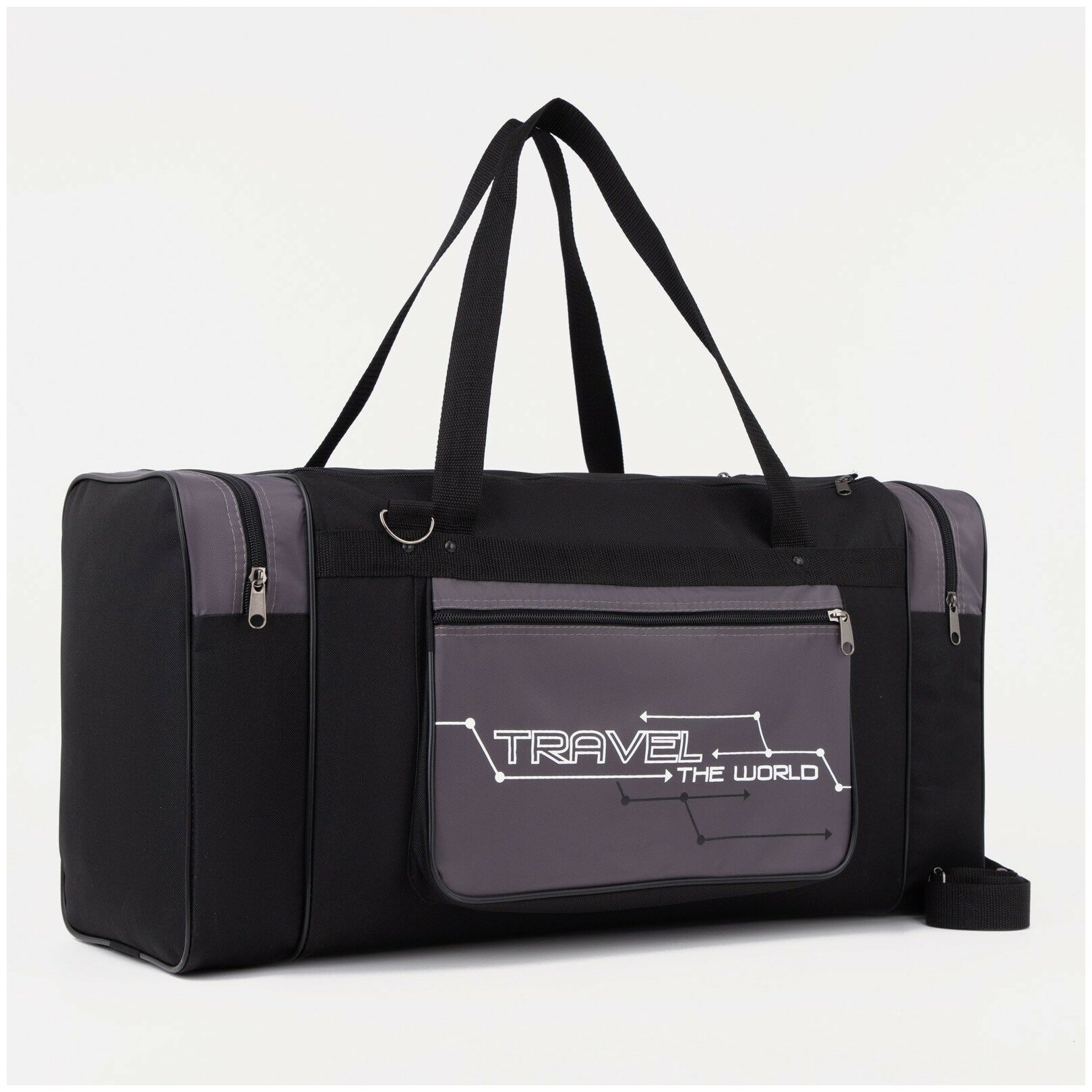 Купить Luris Сумка дорожная на молнии, 3 наружных кармана, длинный ремень, цвет чёрный/серый