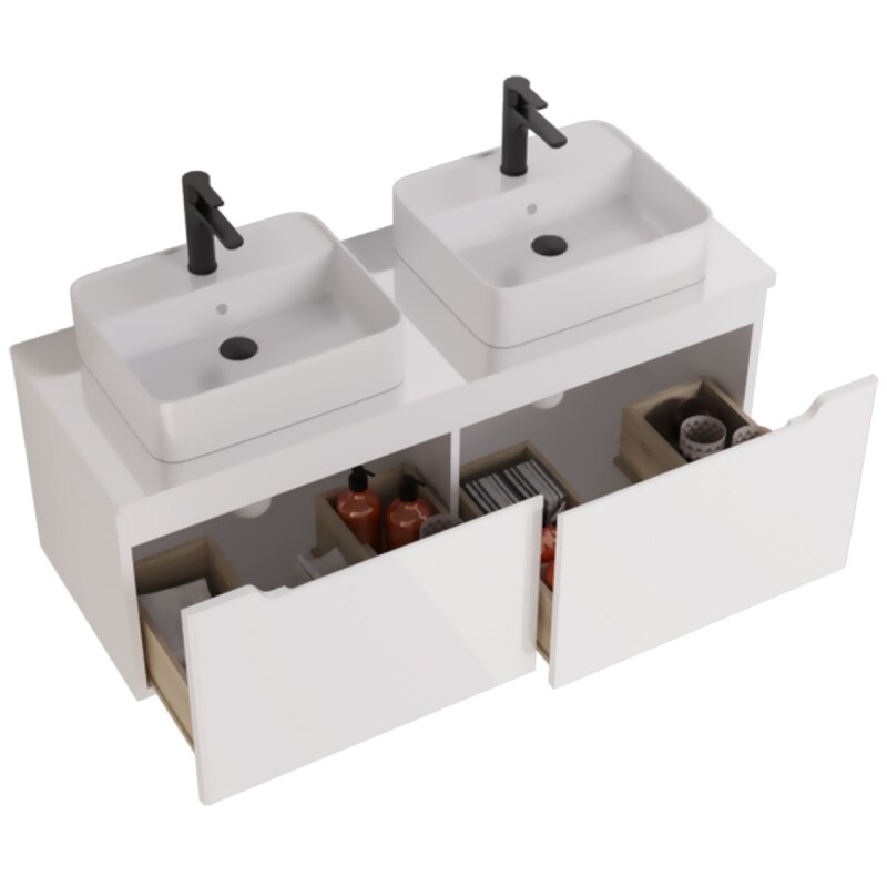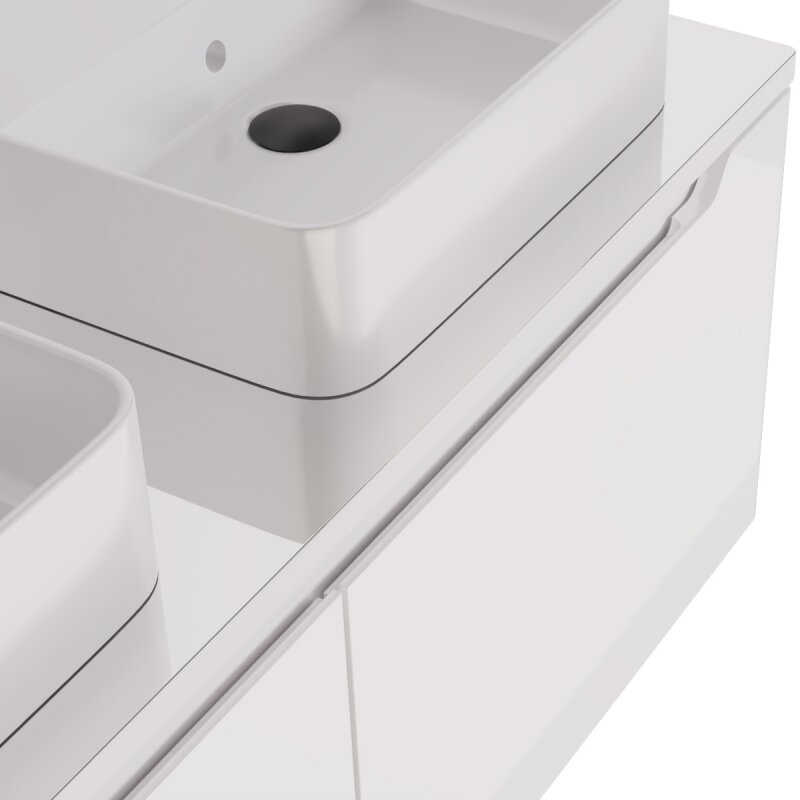 Тумба W, 125 см, подвесная, для умывальника "Гармония" 125 см или стеклянной столешницы W, 2 ящика, белый глянец